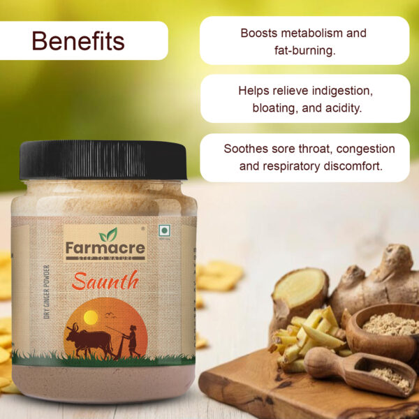 Farmacre Sunth – Dry ginger powder is an extremely versatile spice that is used in a variety of ways in the culinary world, including spiced foods and beverages.