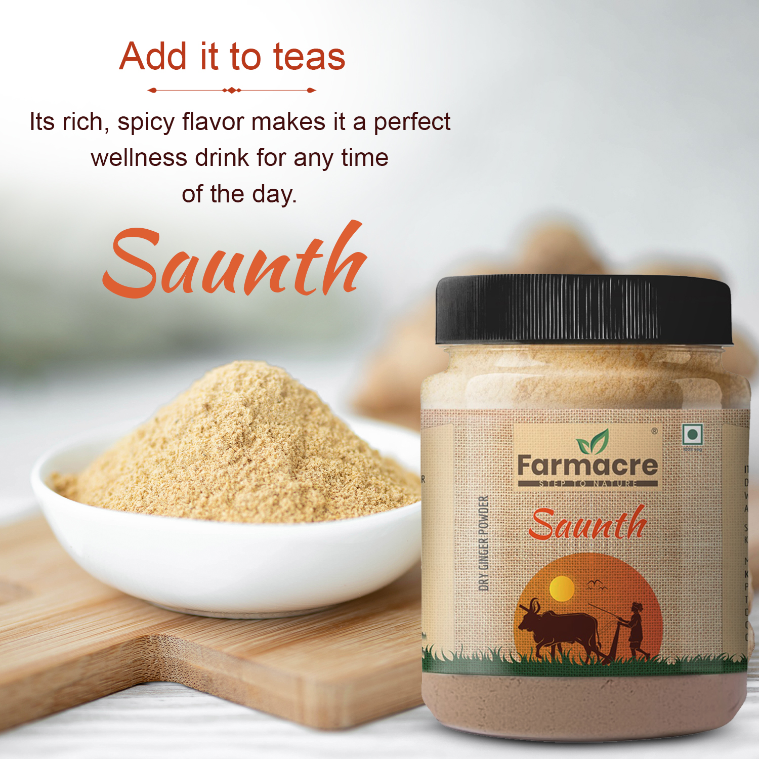 Farmacre Sunth – Dry ginger powder is an extremely versatile spice that is used in a variety of ways in the culinary world, including spiced foods and beverages.